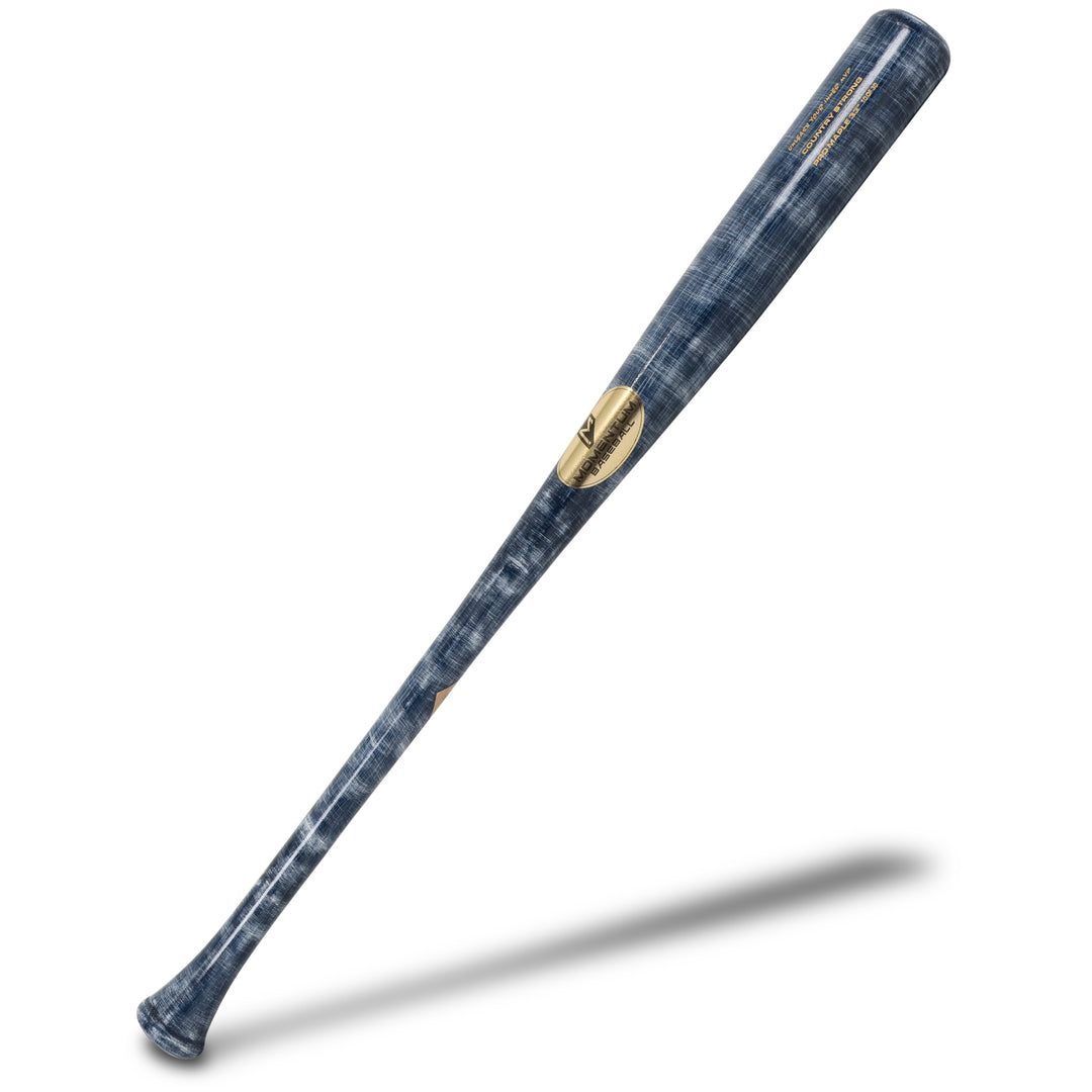A big, long-barrel maple bat built for hitters chasing high exit velocity, finished in a custom denim paint job that stands out and is built to perform.